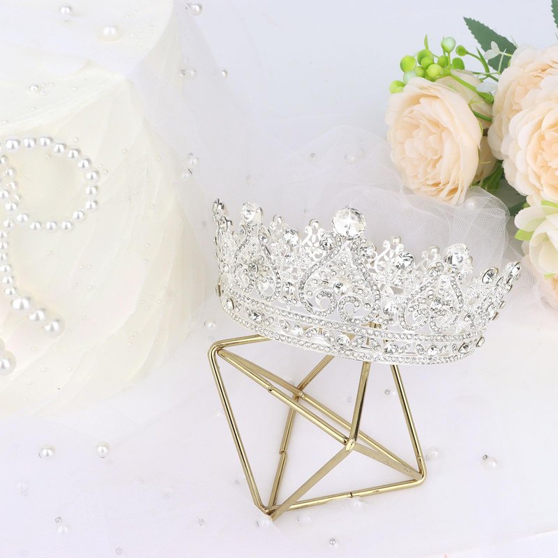 YARIEW Small Silver Crystal Crown for Little Girls Flower Bouquets Accessories Rhinestones Wedding Cake Topper Birthday Crown for Kids Cake Decorations