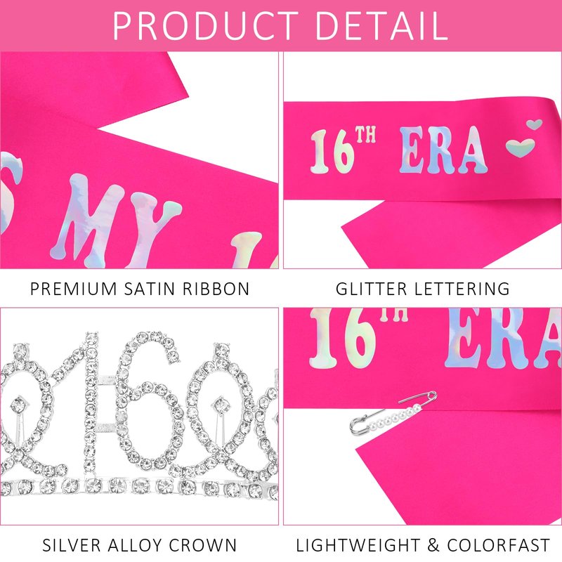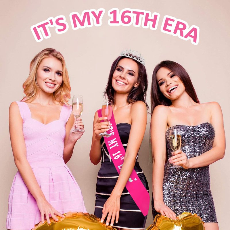 - 16th Birthday Era Sash: Birthday sashes are made of soft, shimmering fabric with foil embossing and can be worn with any outfit; Hot pink birthday sash comes with a safety pin; You can adjust it to fit your figure; Our sashes fit everyone! It's perfect for those who are obsessed with taking the perfect photo on Instagram