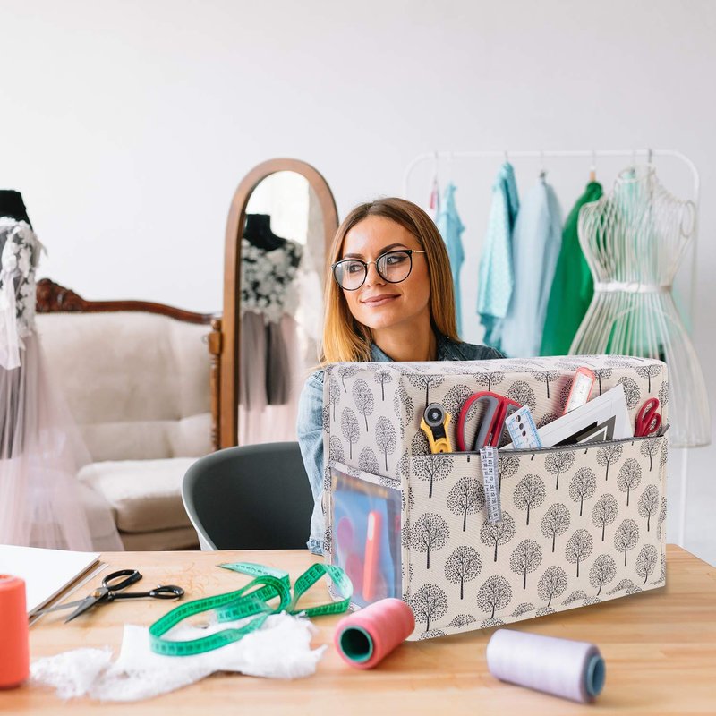 - ROOMY: Multiple pockets can store your sewing supplies, like needles, scissors, clips, thread, tape measure, foot controls..Side translucent pockets are easy access to what inside.