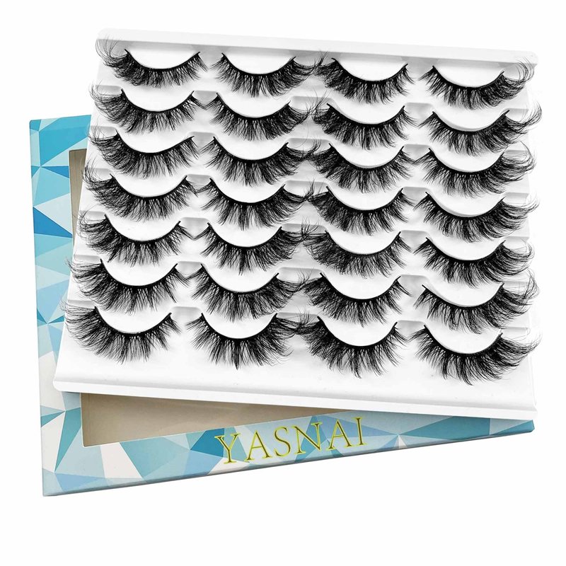 Yasnai Cat Eye Lashes False Eyelashes Fluffy Volume Lashes Wispy Fake Lashes Natural Eyelashes 14 Pairs Pack 9D