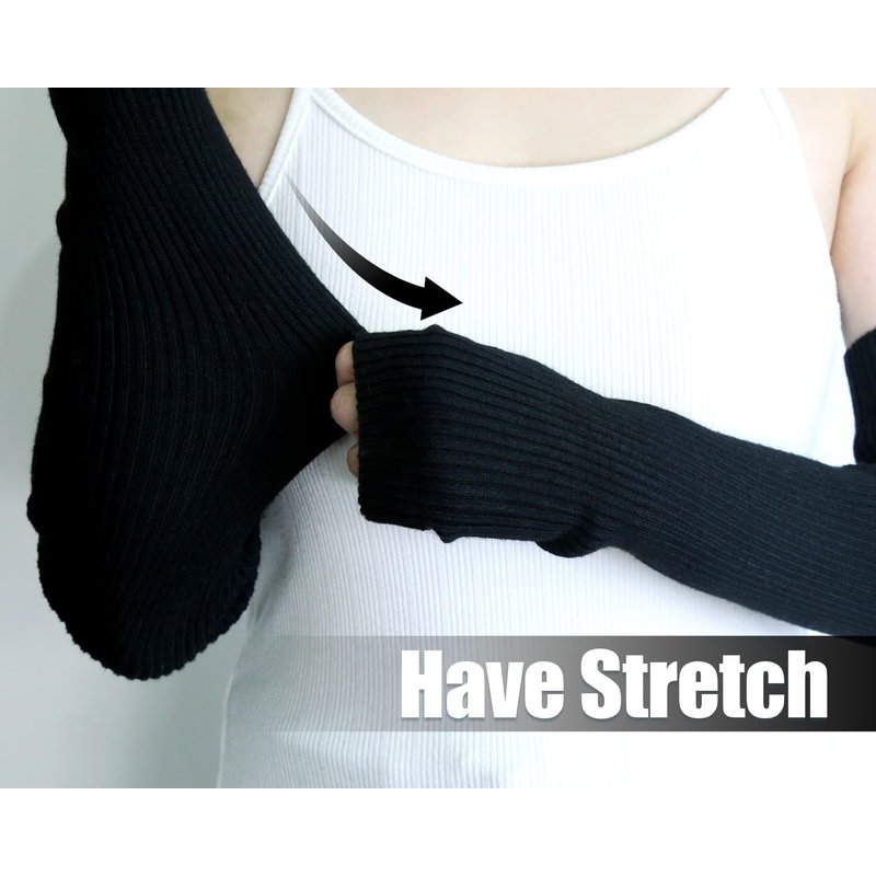- Thumb Hole and Fingerless Design: The typing gloves for cold hands are designed with a thumb hole that exposes half of your hand, so you can use your computer and cell phone flexibly. And the thumbhole position is well stitched, you don't need to worry about deformation and unstitching. The arm covers for women are super stretchy, so they can accommodate a wide range of arms from slim to thick.