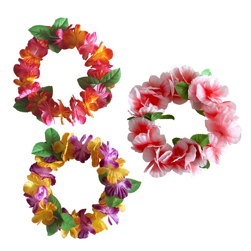 - HIGH QUALITY: This hawaiian headband set are made of high quality smooth shiny soft plastic, will not hurt your body. Color: as shown in the pics, package: 12 pcs hawaiian headband, approximate circumference: 21.7"