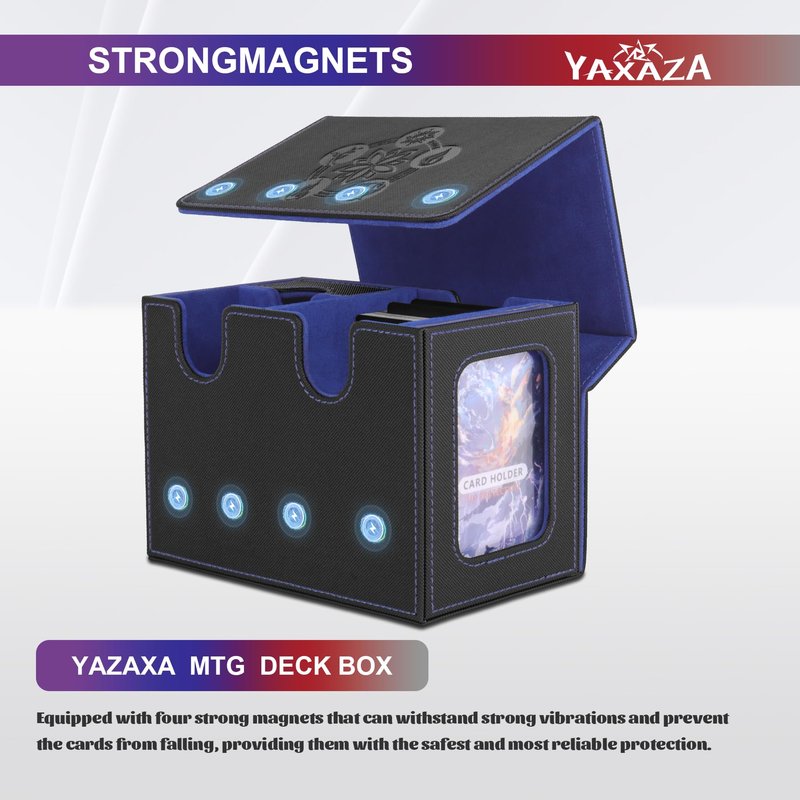 The YAXAZA MTG Deck Box is designed for trading card game enthusiasts, combining high-quality materials, large capacity, a display window, versatility, and strong protection to meet all your card storage needs