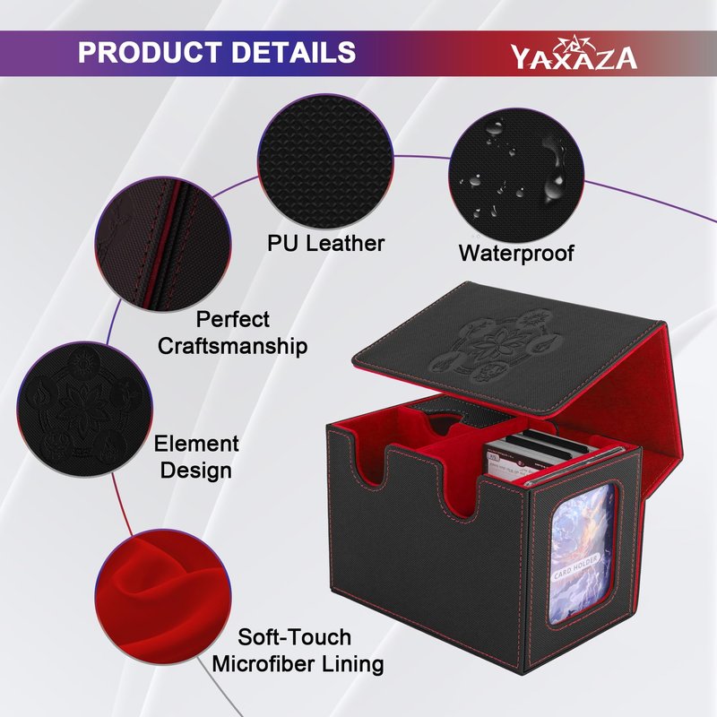 The YAXAZA MTG Deck Box is designed for trading card game enthusiasts, combining high-quality materials, large capacity, a display window, versatility, and strong protection to meet all your card storage needs
