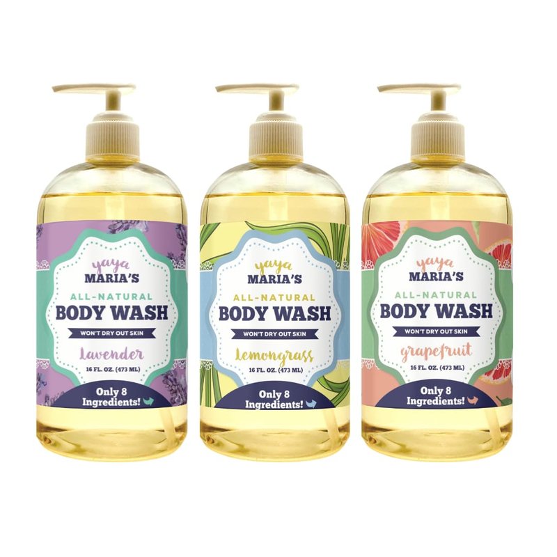 Yaya Maria's Natural Body Wash, Only 6 Ingredients, 100% Nontoxic, Keeps Skin Soft, Cruelty-Free (Variety Pack)