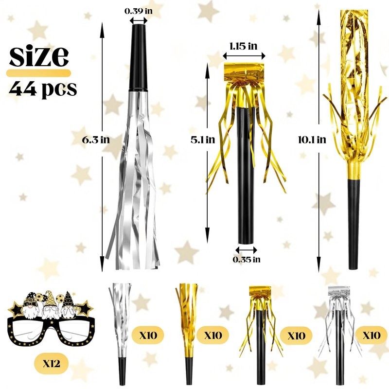 - Perfect for Celebrating the New Year: This 2025 party hats Hat Set includes 12 beautiful foldable hats, 16 each of gold and silver whistles. With unique star decorations on the top and “Happy New Year” printed on the body of the hats, these fun party hats are designed for New Year's Eve celebrations, make your New Year's Eve party a festive one in no time at all.