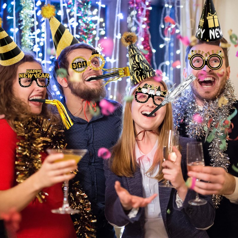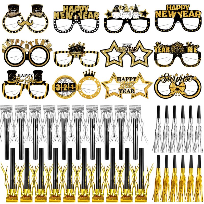 Yazabai 44 Pcs 2025 New Year's Eve Party Supplies Including Happy New Year Hats Glasses Silver and Gold Noisemakers (Glasses)