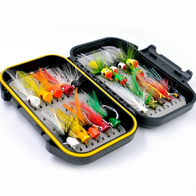 YAZHIDA Fly Fishing Flies Kit Fly Assortment Trout Bass Fishing with Fly Box, with Dry/Wet Flies, Nymphs, Streamers,Fly Poppers (pop21)
