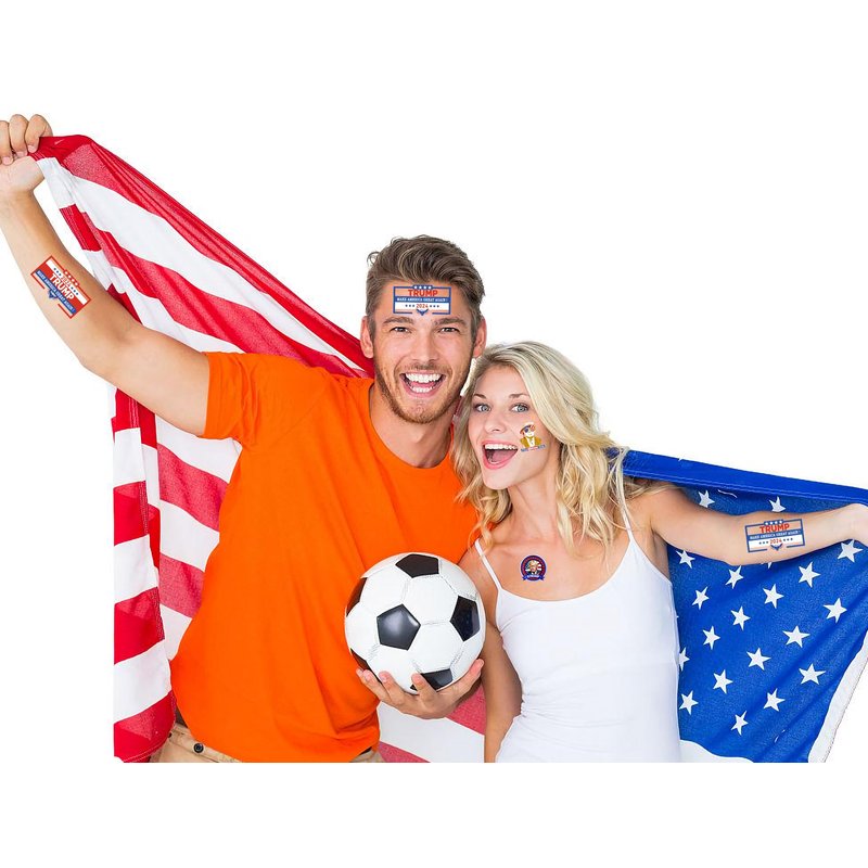 Unleash your playful side with these Donald Trump temporary tattoos! These novelty tattoos let you proudly display your admiration for the former President in a fun and temporary way. Whether you're attending a political rally, costume party, or just want to show your support, these tattoos are a unique conversation starter. The vibrant colors and realistic designs ensure your temporary ink stands out. Easy to apply and remove, these tattoos are a harmless way to express your personality. Embrace your patriotism and make a bold statement with Donald Trump temporary tattoos!