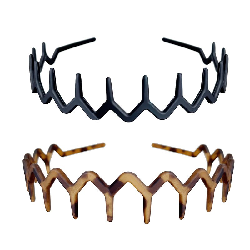 Our set of 2 zig zag headbands, the perfect blend of style and functionality for individuals seeking an exceptional hair accessory. Crafted with precision, these plastic tooth hair comb headband feature a shark tooth zig-zag pattern, setting them apart from ordinary hairbands. Made from premium-quality plastic, these plastic headbands are not only fashionable but also built to last, ensuring they retain their shape and appeal over time. These versatile headbands cater to a wide range of ages, suitable for women, men, and girls. The comfortable fit of these wavy toothed hairbands makes them an excellent addition to any ensemble, whether it's for daily wear, special occasions, or casual outings. The black color adds a touch of sophistication, allowing you to effortlessly elevate your hairstyle. Designed for ease of use, these comb tooth headbands are ergonomically crafted, making them simple to put on and ensuring they stay securely in place throughout the day. Whether you're attending a formal event or going about your daily routine, these headbands add a fashionable twist to your look. Don't settle for ordinary hair accessories - choose our comb Headbands to make a bold statement with your hairstyle. Experience the perfect blend of style, comfort, and durability. Add these headbands to your collection and discover a new level of hair accessory excellence.
