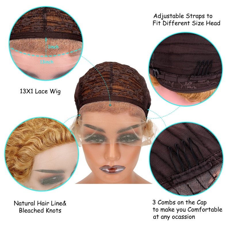 Ycoiner Short Curly Lace Front Wigs Human Hair Pixie Cut Short Curly Human Hair Wigs Pixie Cut HD Lace Front Wigs Human Hair Plucked Bleached Knots Pixie Cut Wigs for Black Women