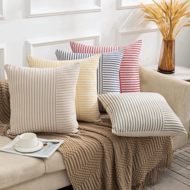 - ★★★Modern Simple Design:Decorative pillow covers with a modern but simplistic aesthetic,colors strips with patchwork made a modern looking,invisible zipper closure for an elegant look,perfect for rustic farmhouse home decor. Come and use these throw pillows to achieve your decorating inspiration.
