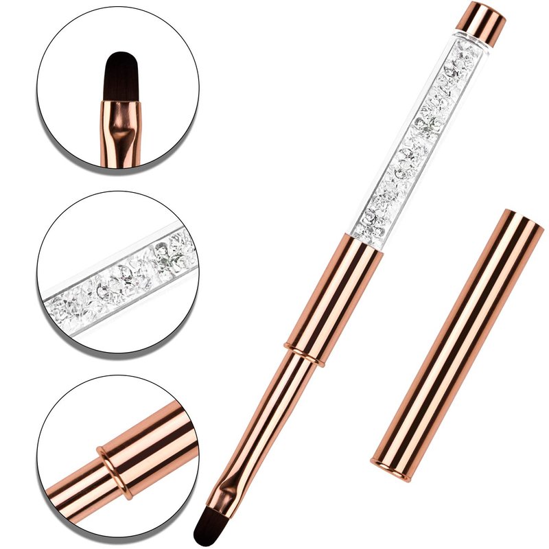 YCYAN 1Pcs Oval UV Gel Nail Brush Rhinestone Handle Professional Nail Art Tools Size 8 Rose Gold