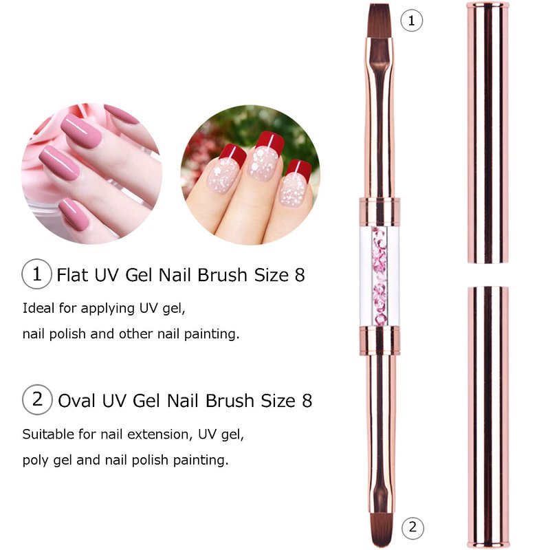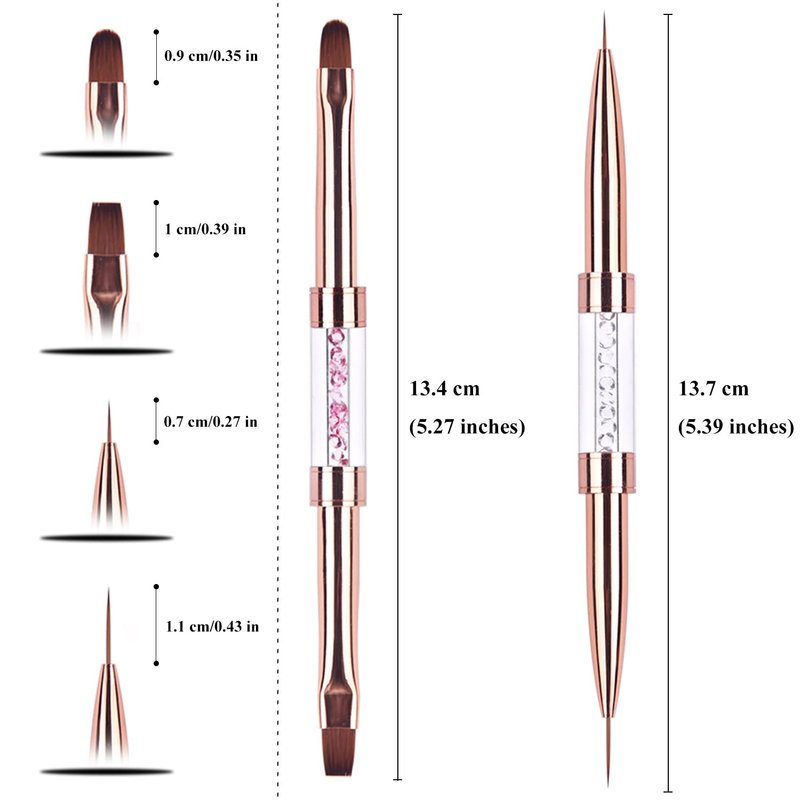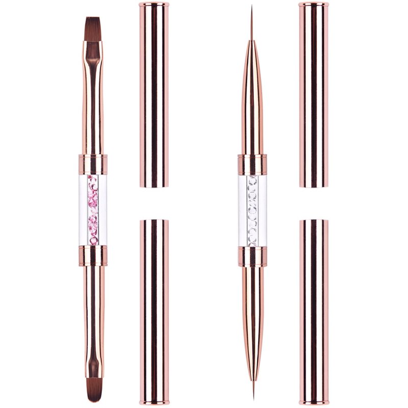 Ycyan 2Pcs Dual-ended UV Gel Nail Brush Set Rhinestone Handle Nail Art Design Brushes Professional Nail Tools Rose Gold
