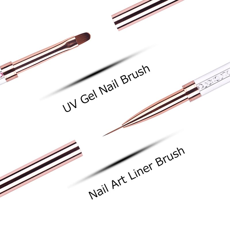- ✿【Package include】: 2 pieces nail art brush set, 4 different size: Oval & Flat UV Gel Nail Brush size 8 and Nail Art Liner Brush 7/11 mm. 100% brand new and high quality.