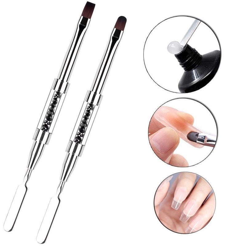 Ycyan 2Pcs Polygel Nail Brush & Picker, Dual-ended Oval & Flat Gel Nail Brushes Polygel Slice Tool for PolyGel UV Builder Gel Nails Extension