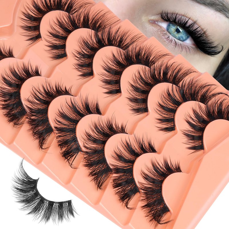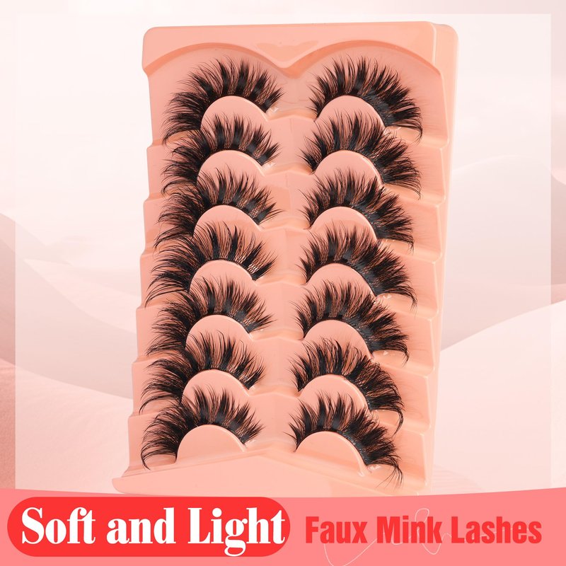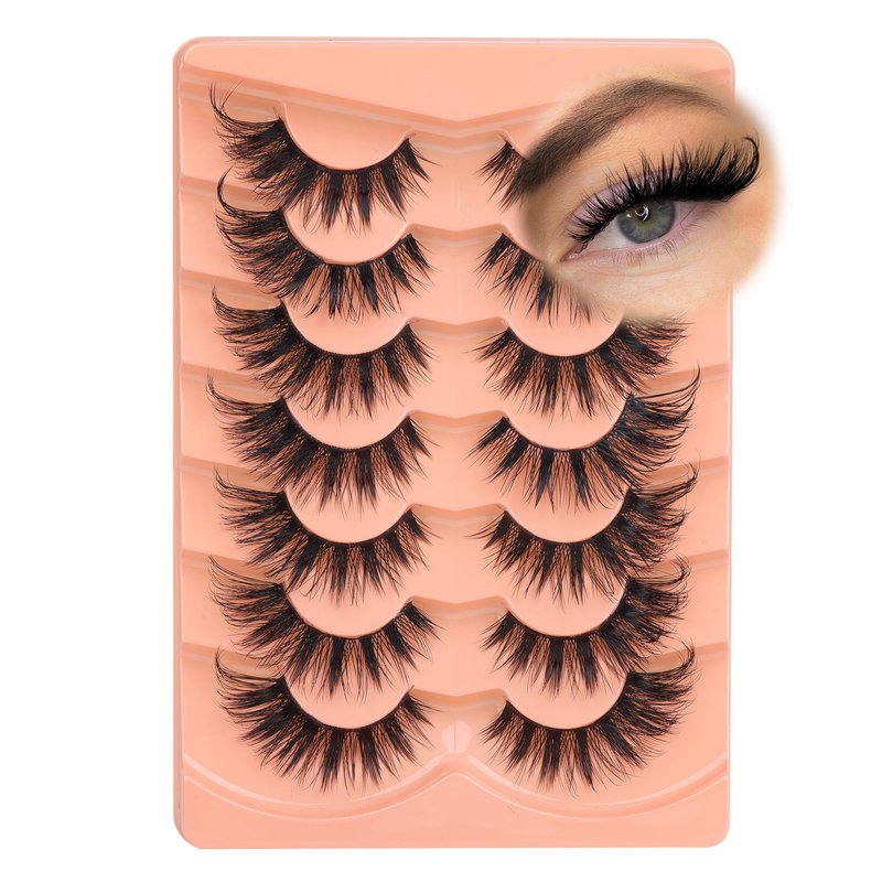 YDAGKH Fox Eye Lashes Fluffy Faux Mink Lashes Manga False Eyelashes Wispy Clear Band Fake Lashes 3D Cat Eye Strips Lashes Dramatic Eyelashes 7 Pairs Pack