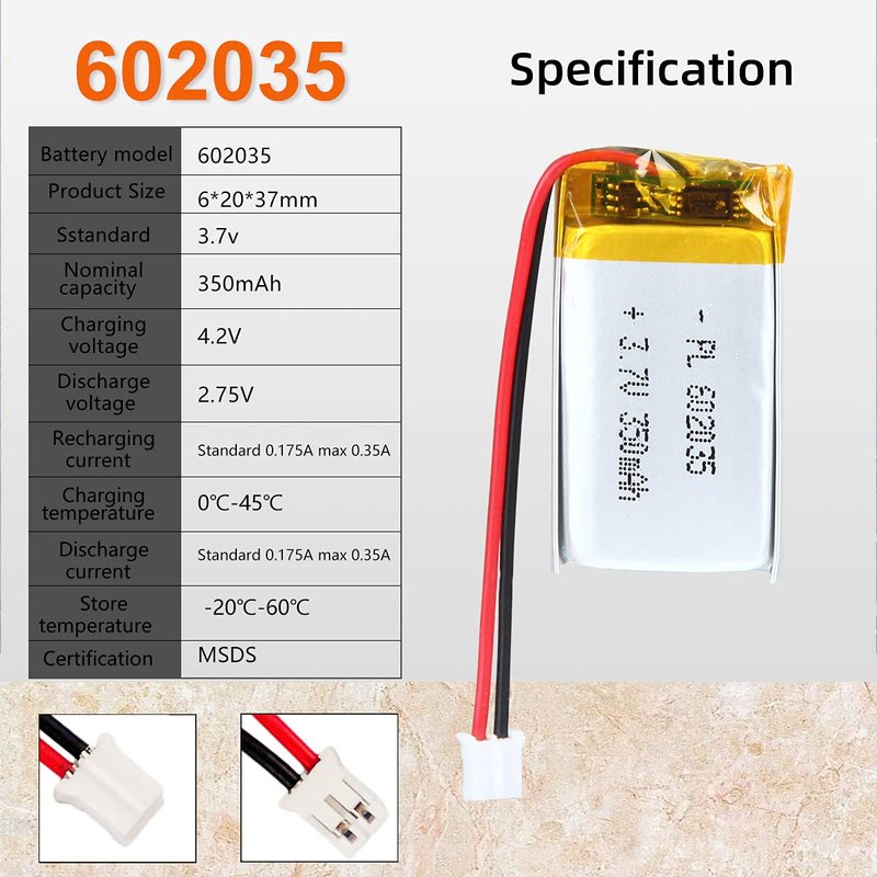 - NOTE: The 3.7V 350mAh 602035 Lithium Battery is NON-POWER BATTERY! ! ! It can not be used for power device that require high current such as UAV, Model aircraft , Electric toys, Power tools and other.