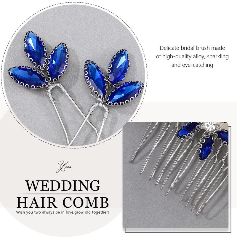 Yean Blue Crystal Wedding Hair Comb Silver Hair Piece Set Rhinestone Bridal Hair Accessories for Women and Girls(3 Pcs) (Silver)
