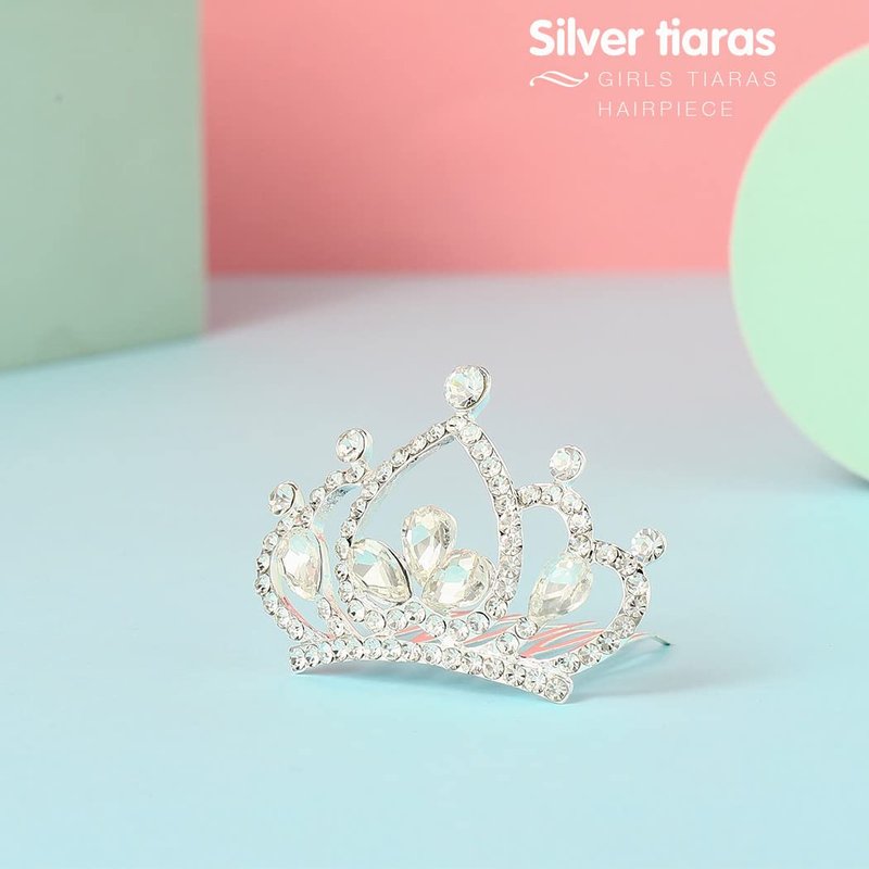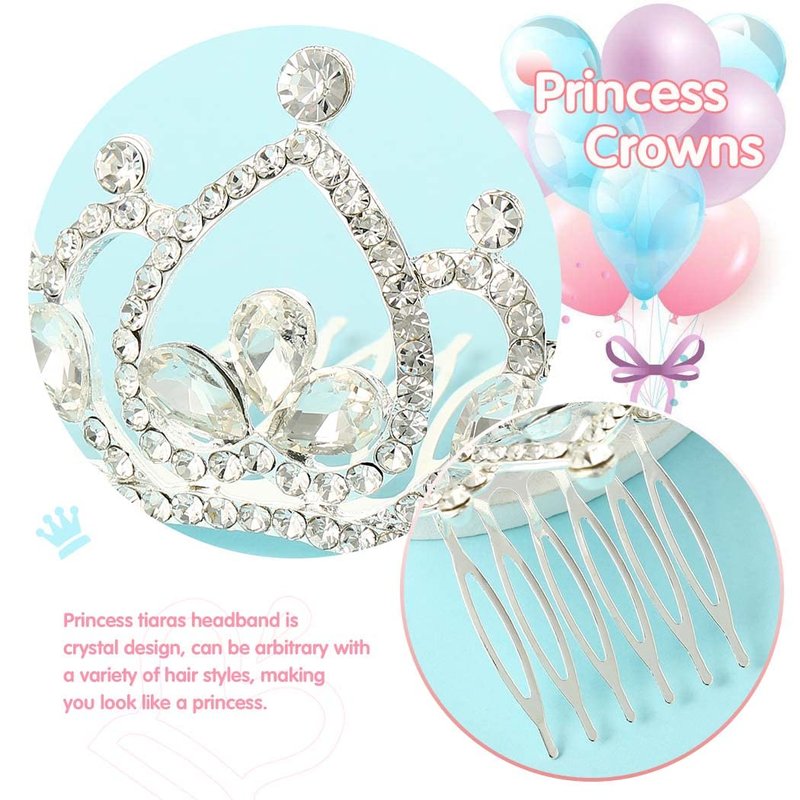 Yean Princess Crown Comb Mini Crystal Tiara Hair Comb Silver Rhinestone Tiara Birthday Party Favors Decorations and Accessories for Girls (Silver)