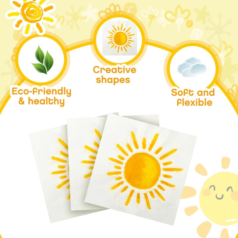 - Versatile and Practical: with a package of 100 sun napkins, you can easily cater to multiple events and gatherings without worrying about running out of napkins; Nice for sun theme parties, picnics, and everyday use