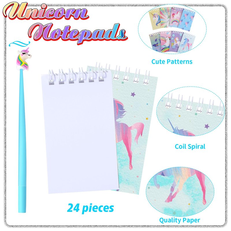 - Sufficient Stationery Set: mini unicorn stationery set includes 24 pieces of mini unicorn spiral notepads and 24 pieces of cute unicorn pens, 48 pieces class reward gift prizes in total, sufficient quantities and various patterns girls unicorn notepads pens can meet your party use needs