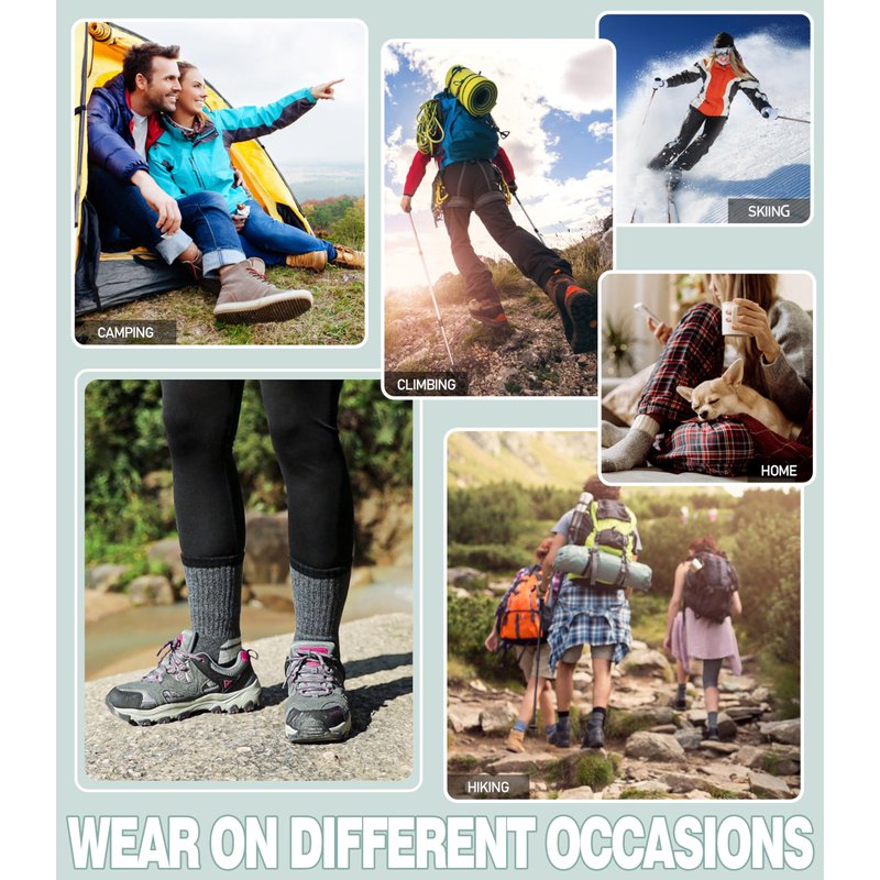 - PROTECTION for FEET --These womens wool hiking crew socks have stretchy cuff and arch support ,which can improve the blood circulation and keep socks fit snugly. They are perfect socks for hiking , climbing , skiing , camping ,running , walking or other outdoor activities.