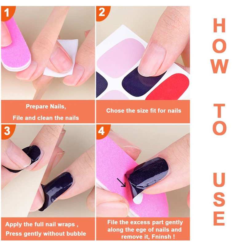 - [Wide applications]: Our self adhesive nail polish strips are popular nail art decorations, safe and non-toxic, fir for any women and girls and all kinds of nails, jSuitable for home use or nail salons. applicable for parties, wedding, dating, daily life