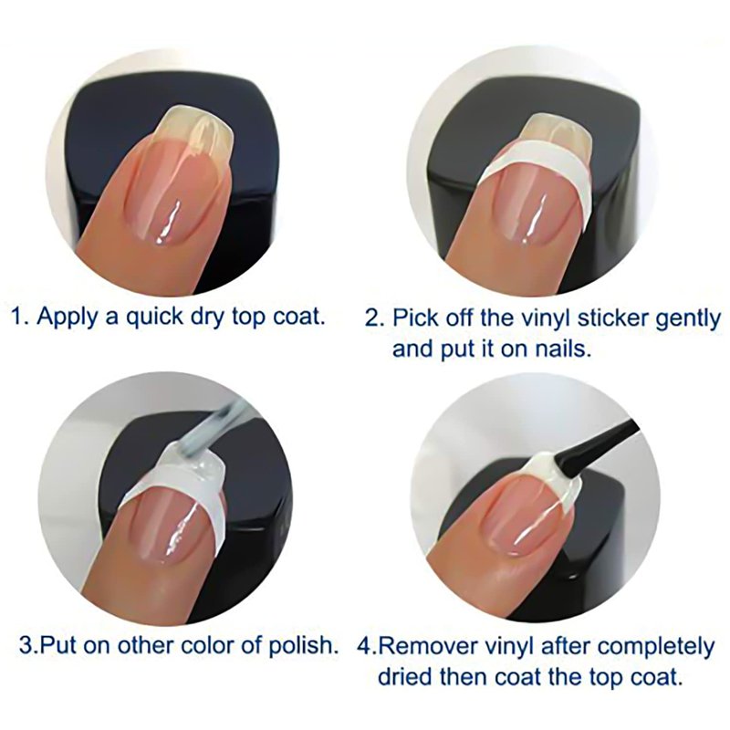 - Easy To Use: just use tweezers to carefully lift the nail guide sticker from backing sheet, and place it along nail tip, leaving the gap where you need to apply the nail polish, after you painted the nail polish and dry, carefully peel off the nail guide sticker from each finger, then finished
