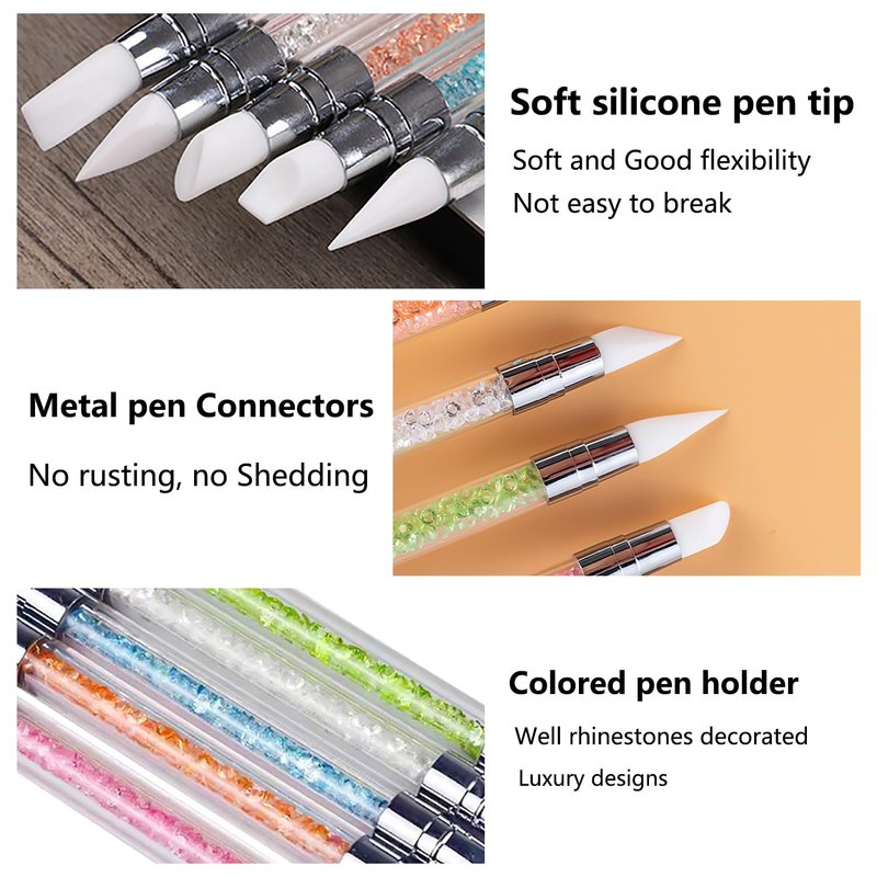 - [Valuable Package]: Package content 6 pieces silicone nail brushes, include 5 PCS double head silicone nail art acrylic pens and 1 pc soft silicone ombre nail brush.