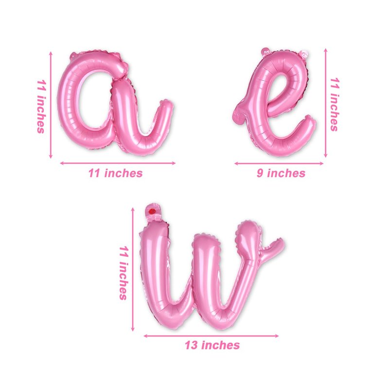- Letters a, e and w are approx. 11’’ tall when inflated; y and h are approx. 22’’ tall when inflated