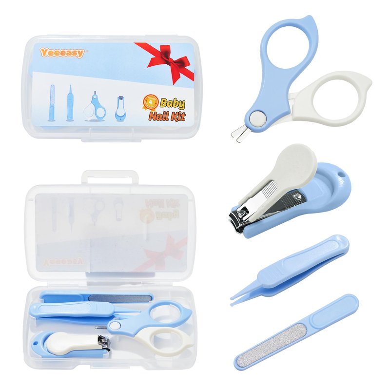 Yeeeasy Baby Nail Clippers Kit Baby Grooming Set with Nail Clippers, Scissors, Nail File & Tweezers Baby Care Kit Fingernail Cutter for Baby,Newborn,Infant,Toddler,Kid(Blue)