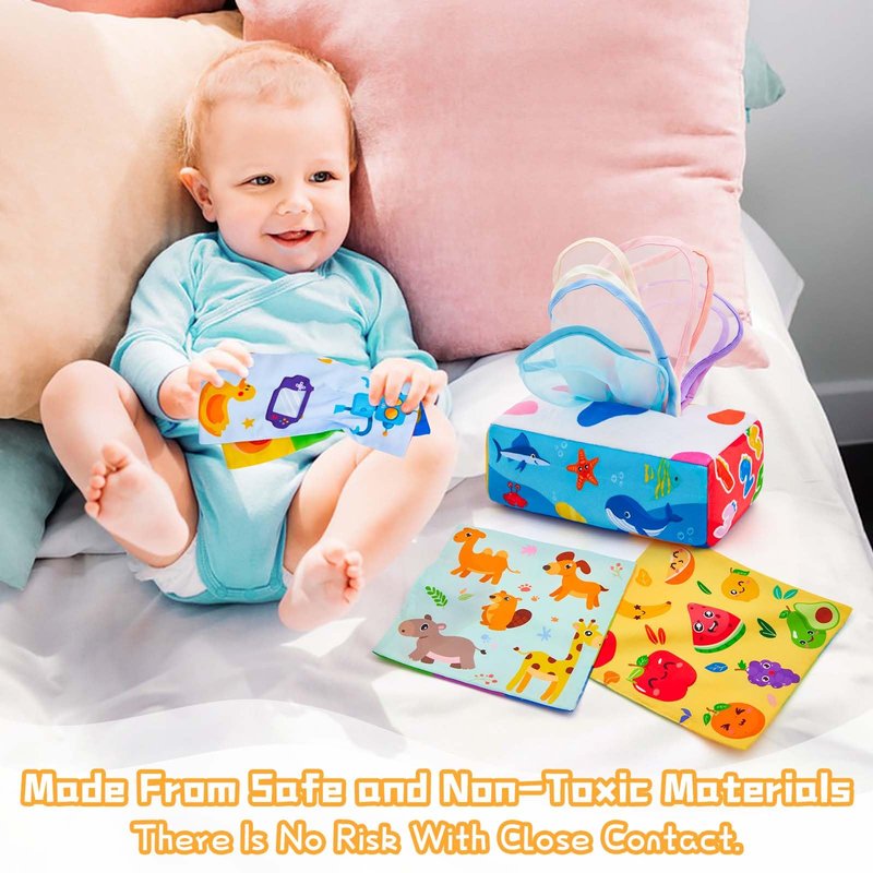 - [Safe Materials]This toy is specifically designed for babies, made from safe, non-toxic, and skin-friendly materials, ensuring it is completely safe. Even if a baby accidentally puts the tissue in their mouth, there are no safety concerns