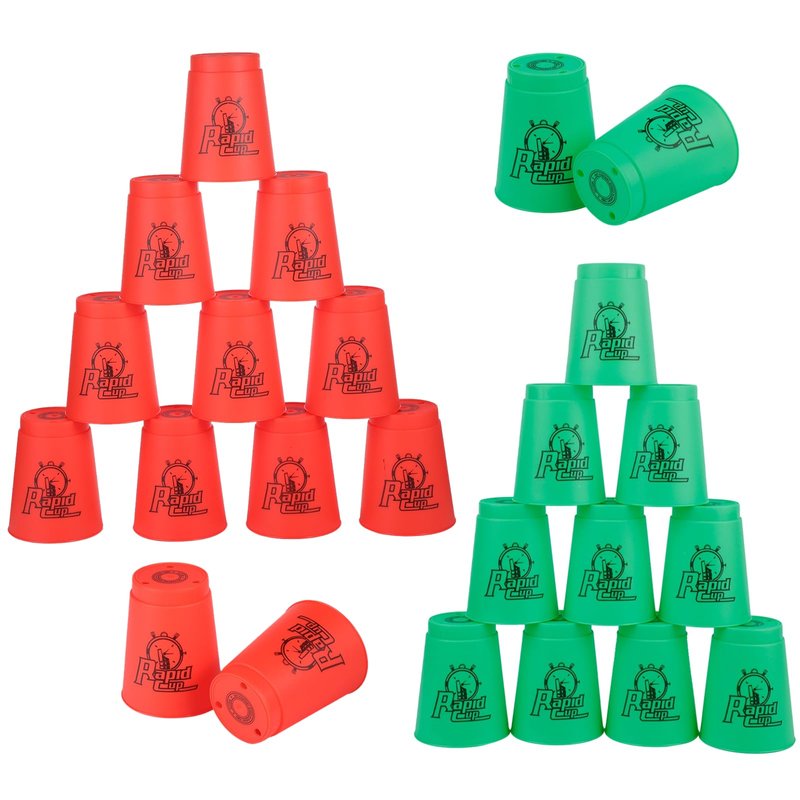 - Sport Stacking: 24 cups in two colors red and green packed in 2 mesh bags, made of high-quality materials and specially designed to minimize friction between cups in sport stacking and reduce stacking time!