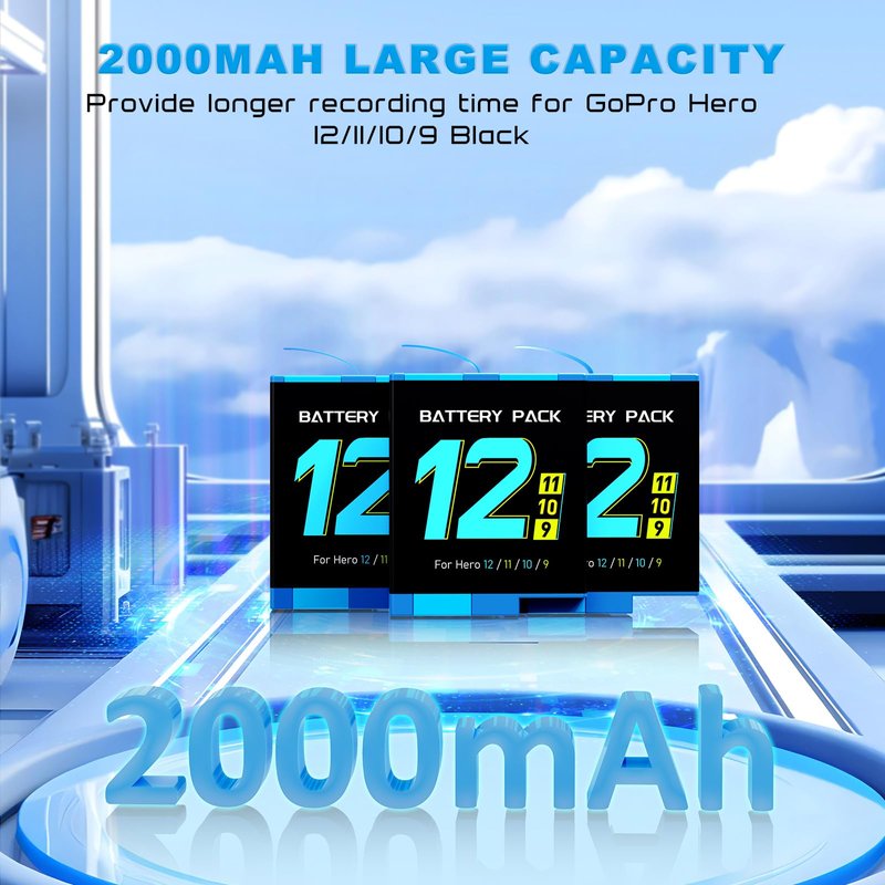 - 【PACKAGE CONTENTS】The package includes: 3 *2000mAh Gopro Hero 12/11/10/9 battery, 1*3-channel storage charger, 1*USB data cable, and 1*manual. Both the battery and the charger are small and light, making it very convenient to carry around. If you encounter problems during use, you can find us at any time.