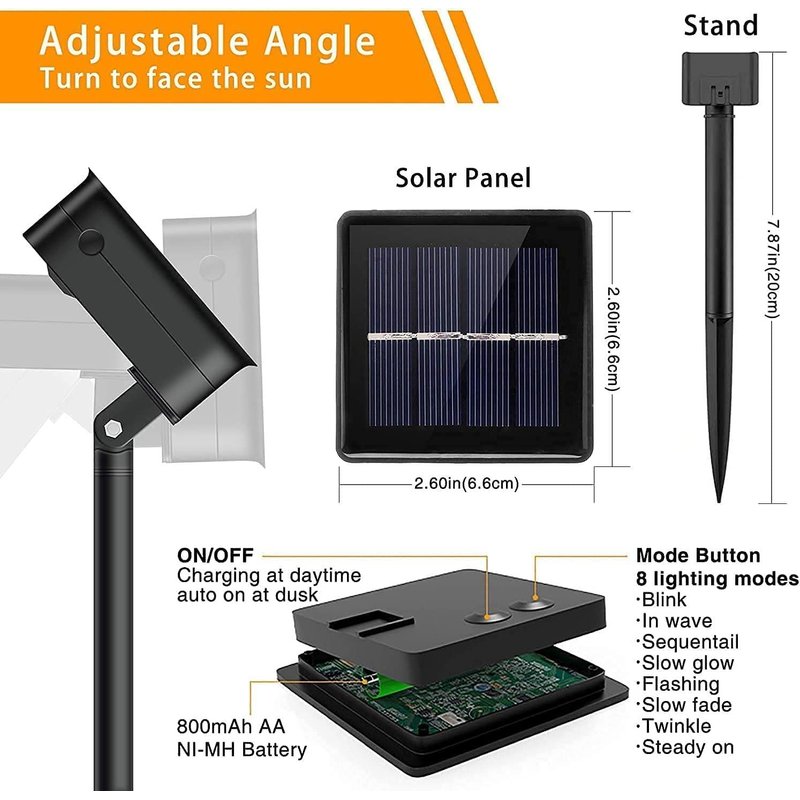 - Solar Powered:Christmas string lights are feature a rechargeable 1XAA 1.2V 600mAh Ni-MH battery. It can work for 8-10 hours after fully charge. Fully adjustable solar panel to match the best direction of the sun for a better charging during the day. A built in photo sensor will automatically turns on at night for hassle-free illumination and off at dawn. They are good quality and easy to install, and perfect for places that you don’t have outlets. Best part, doesn't cost money to run.