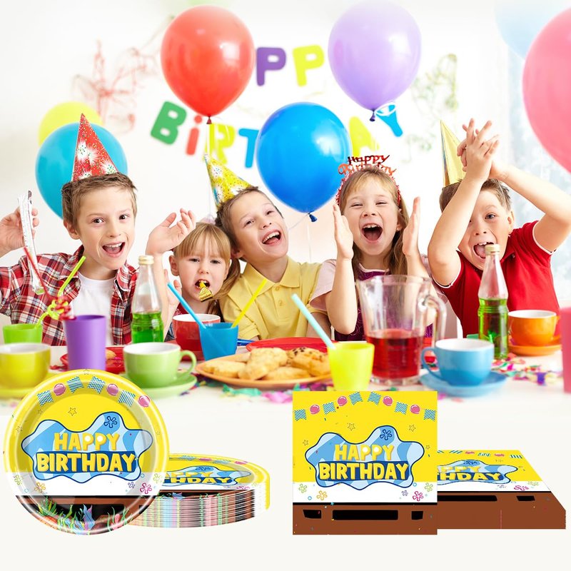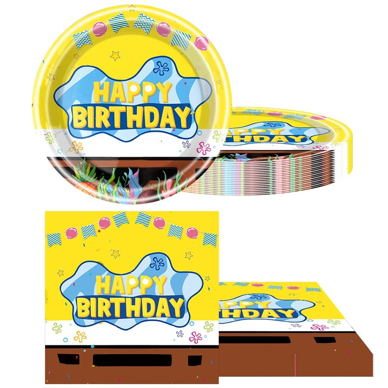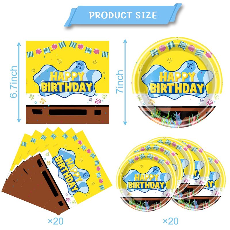 - 1. You will get: 20pcs yellow sponge plates and 20pcs yellow sponge napkins, perfect gift for kids, the party supplies set are a perfect complement to your party supplies themed birthday party decorations!