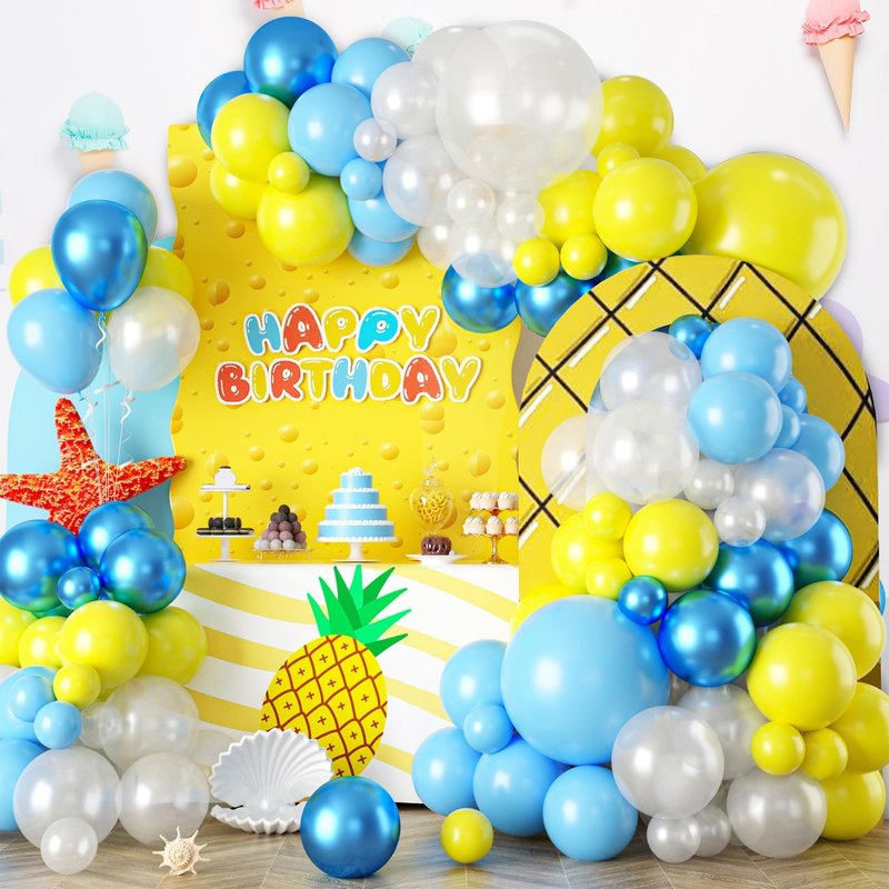 Yellow Blue Clear Balloon, 60 Pcs 12 Inches Metallic Blue Sponge Theme Balloons for Kids Cartoon Sponge Party Decorations Birthday Balloons Baby Shower Engagement Party Supplies