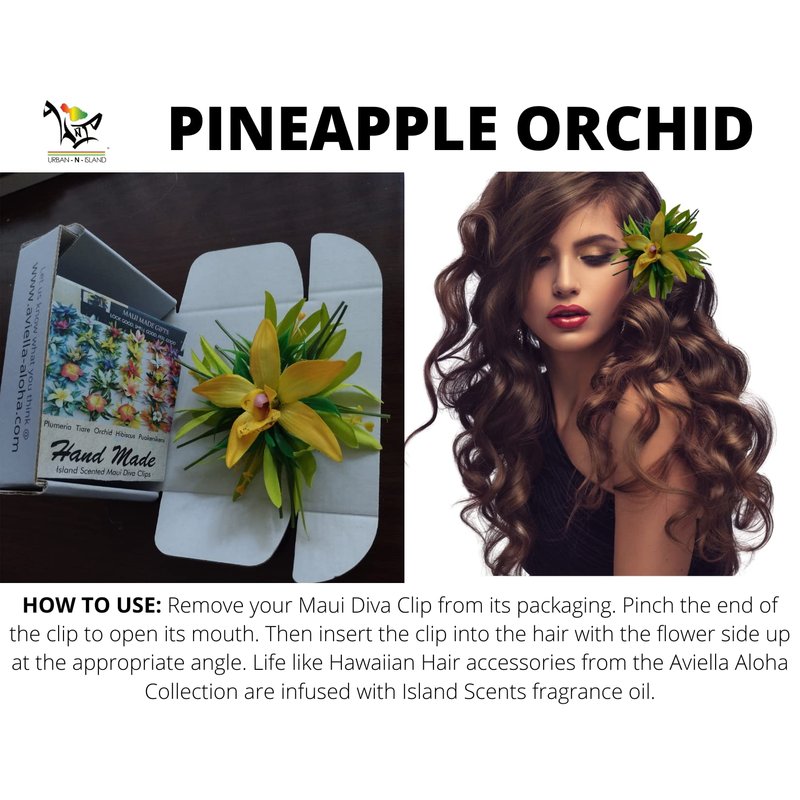 - 🌺 HOW TO USE Remove your Maui Diva Clip from its packaging. Pinch the end of the clip to open its mouth. Then insert the clip into the hair with the flower side up at the appropriate angle. Life like Hawaiian Hair accessories from the Aviella Aloha Collection are infused with Island Scents fragrance oil.
