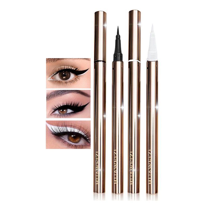 - 2PCS Liquid Eyeliner: Pitch Black and White, double color set.The liquid eyeliner pen tip has smooth lines, control the thickness of your lines by pressing down just a touch, It can help you easily create cat eye and fashionable makeup