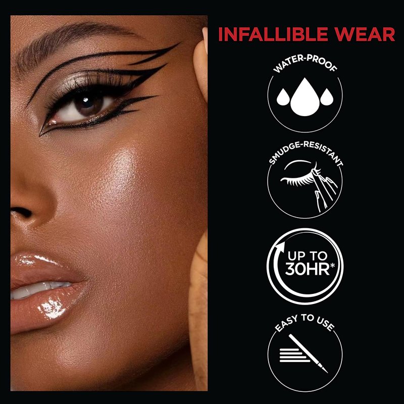 < b r >LIQUID EYELINER:Our ultra-precise tip is flexible and easy to use. Every stroke is unbelievably fluid for a defined finish. Control the thickness of your lines by pressing down just a touch. Fine and natural, broad and bold the look is always up to you. < b r >WATERPROOF:our ultimate waterproof liquid liner provides smudge proof, flake proof, cry proof staying power, there's no need to worry about getting caught in the rain or pushed into a pool NATURAL & LONG LASTING FORMULA:Our eyeliner pens are natural, hypoallergenic, safe for sensitive eyes and contact lens wearers, and last over 24 hours.the black and White colors choices helps you to achieve all eye looks, fits for all occasions CRUELTY FREE < b r >COSMETICS: We believe animals belong in our arms—not in a lab.We don't test any of our products on animals LUXURY DESIGN:The luxury metal golden design gives your eyeliner pen its own identity. Also an optimistic gift for everyone on Christmas, Valentine’s Day, Mother’s Day, Birthday or any special day for your special ones. don’t hesitate, no risk add your warm wishes to cart now