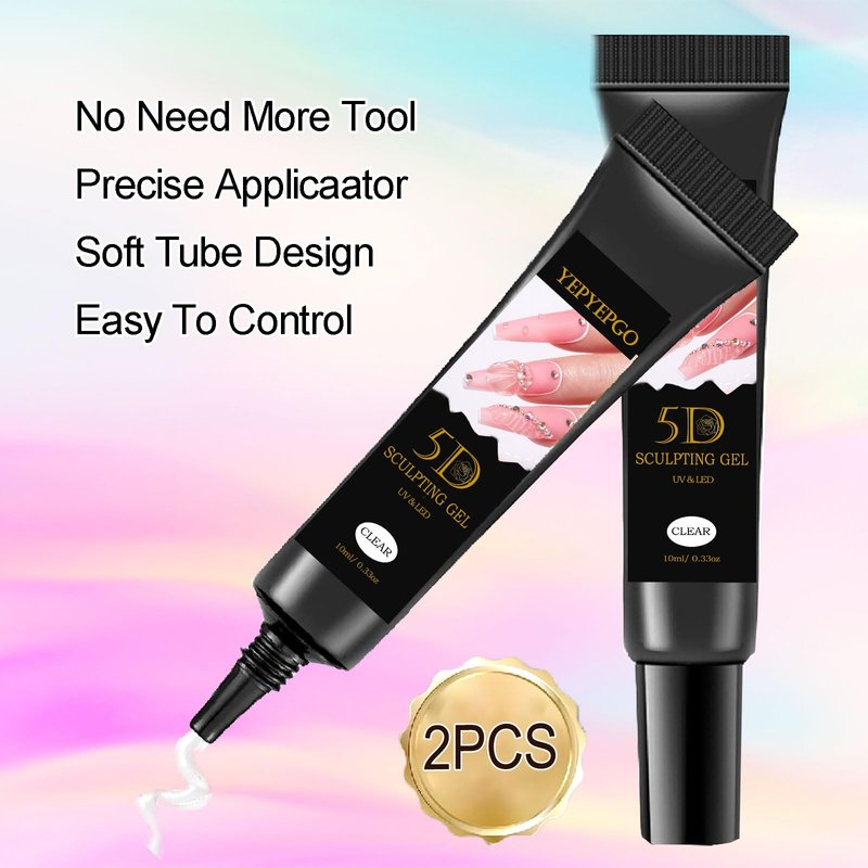 - Multifunction Sculpting Gel: This item contains 2pcs 10g (0.66 oz) Clear Tube Gel which sutable for nail beginer. YEPYEPGO 3d Nail Art Gel can not only use for sculpting, building, and creating mesmerizing 3D designs but also use as nail charms rhinestone glue