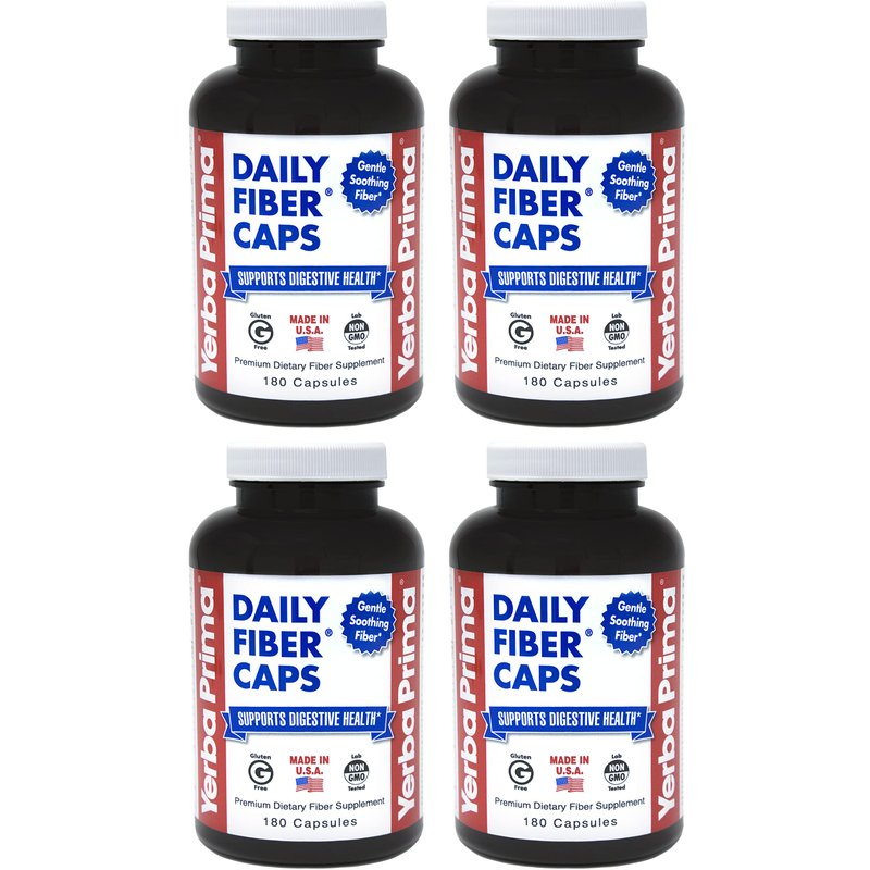 Yerba Prima Daily Fiber Caps - 180 Capsules, (Pack of 4) - Soluble & Insoluble Dietary Fiber Supplement - Colon Cleanse - Gut Health - Vegan, Non-GMO, Gluten-Free