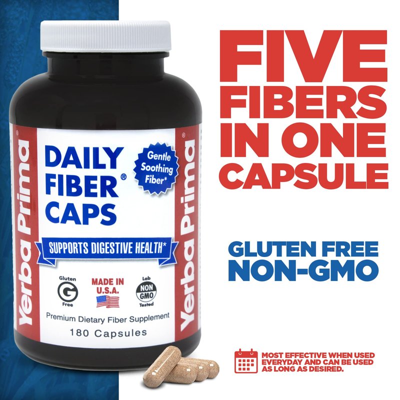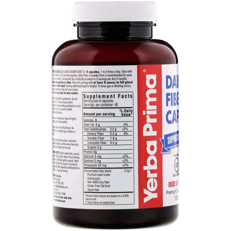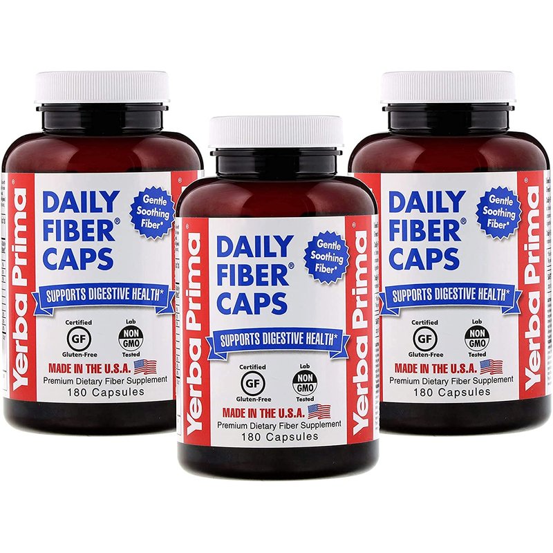Yerba Prima Daily Fiber Capsules – 180 Caps (Pack of 3) - Soluble Dietary Fiber Supplement - Colon Cleanse - Gut Health - Constipation Relief – Vegan, Non-GMO, Gluten-Free