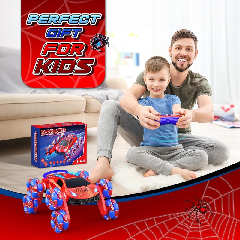 - Longer Playing Time & Rechargeable: With two 1200mAh rechargeable batteries, it can offer up to 1 hour of playtime per full charge, ensuring hours of uninterrupted fun. Our spider remote control car even comes with a USB charging cable, making it easy to recharge and get back on the road. It's cool racing drift car for 6 7 8 9 10 11 12 13 year old boy birthday gift.