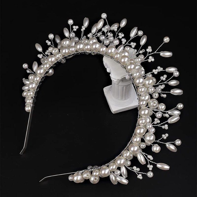 YERTTER Vintage Wedding Pearl Beads Crystal Tiara Hair Crown Handmade Bride Hair Band Bridal Greek Goddess Pearl Head Pieces for Wedding Prom Birthday Party (White)