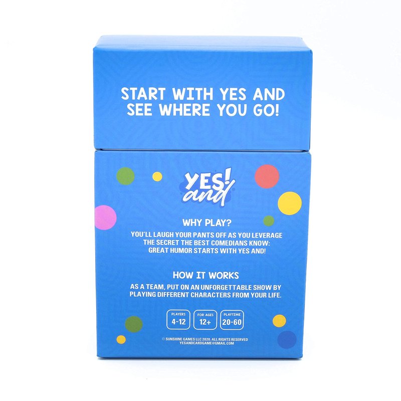 Get ready to laugh your pants off as you bring home the easiest way to play improv comedy. Easy, fun, and popular! Have a blast with friends, family, and coworkers as you play the best improv warm-up games before diving into the main game: Yes And! Improv comedy is a proven training ground for comedic brilliance with notable actors and late night hosts getting their start at improv theathers. Experience the thrill, comedy, and pure joy that comes when people follow these simple rules in novel situations.