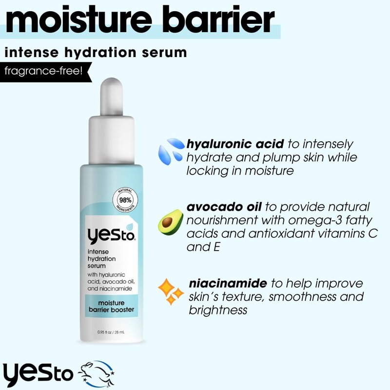 Yes To Intense Hydration Serum, Locks In Moisture and Helps Support Skin's Barrier Against Environmental Damage, Hyaluronic Acid, Avocado Oil and Vitamin B, Natural, Vegan & Cruelty Free, 0.95 Fl Oz