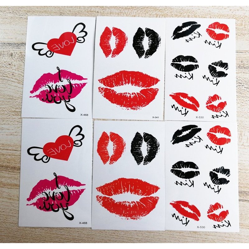 Yesallwas 6 Sheet cute Temporary Tattoo Sticker Fake Tattoos for Women Girls Models, Long Lasting Body Art Makeup red lip temporary tattoos
