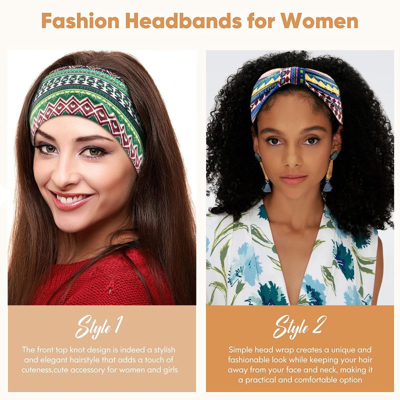 Product Size:The length is 9.5 inches(25cm),the width is 6 inches(15cm),free size,wide and elastic,not too tight or loose.Package includes:6 pack cool headbands.Every single headband has unique print to make it attractive and comfortable to wear.Style and Color:The fitness headband fits girls and women and we have different styles,comes in 6 different colors.Every day different colors,you can match different clothes make your mood more beautiful.Ideal Gift:Wonderful headband for yourself wear.It’s a good choice to share with your friends,sisters,mother etc.Give as perfect gift on Birthdays,Anniversaries,Mother's Day or any other Festivals.